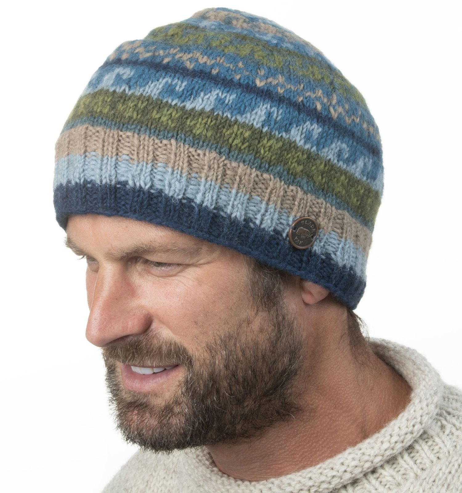 Hand knitted using pure new wool, this fair trade hat is designed for both style and warmth.