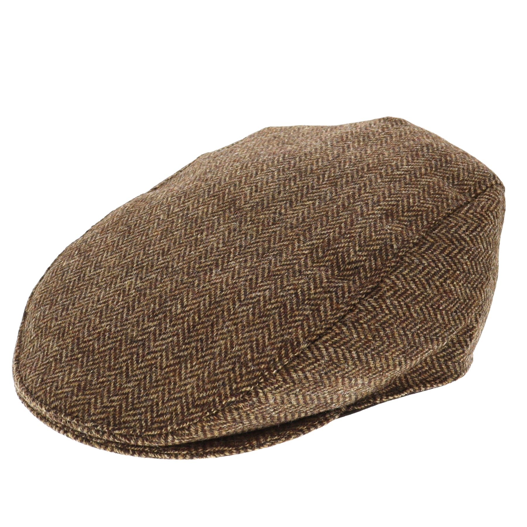 Dents Wool Herringbone Flat Cap - Chocolate