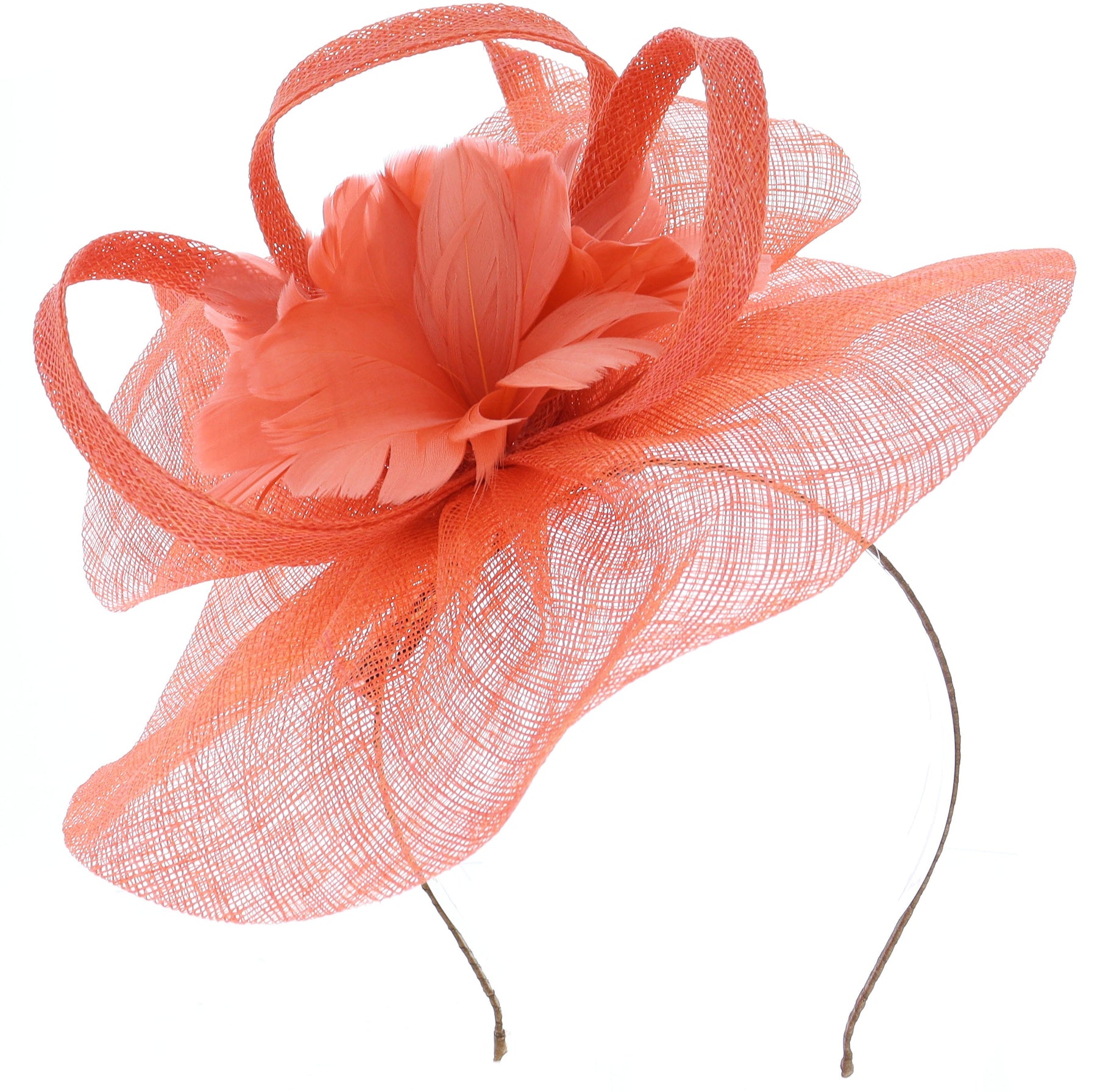 This eye-catching fascinator is the perfect finishing touch for a wedding, a day at the races, or any formal summer event. Designed with a striking mix of fine sinamay loops and soft, delicate central feathers, it creates an elegant yet playful silhouette that adds height and texture to your look.