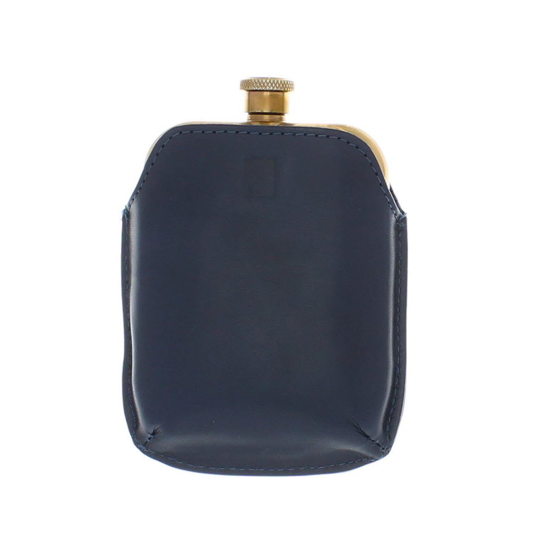 Sophos Hip Flask with Navy Leather Sleeve