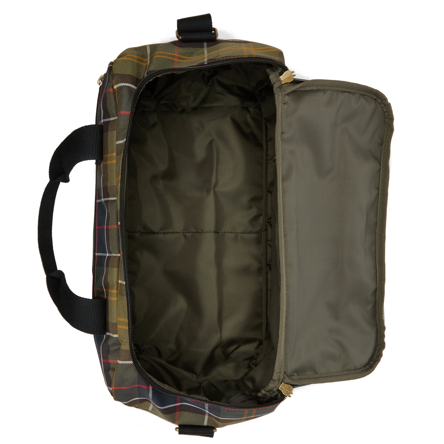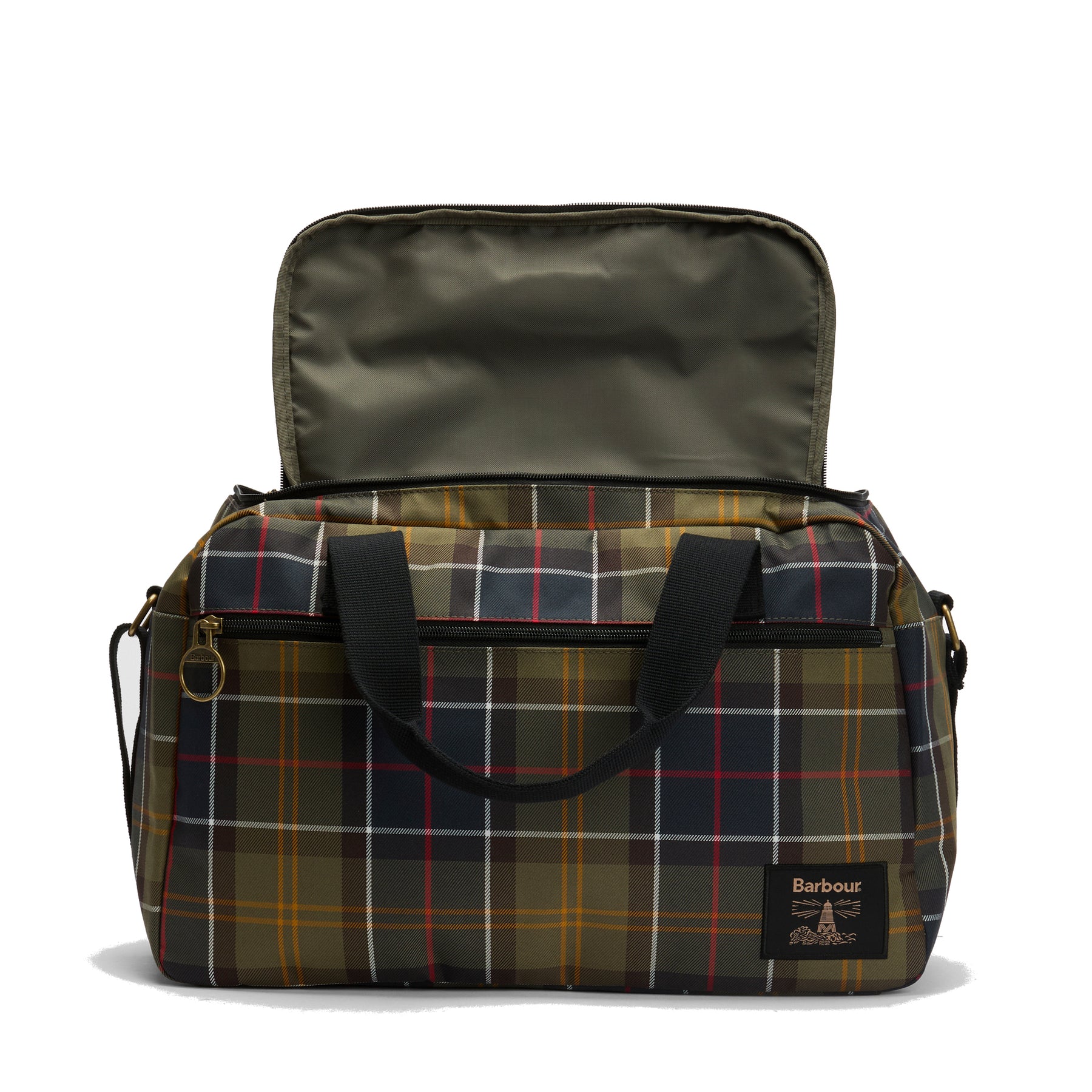 Featuring a unique "frogmouth" zipped flap, this bag opens wide for easy packing and effortless access to your belongings in cramped spaces. Dressed in the timeless Barbour Classic Tartan and finished with a premium faux-leather embossed badge, it proves that functional travel gear can still be incredibly stylish.