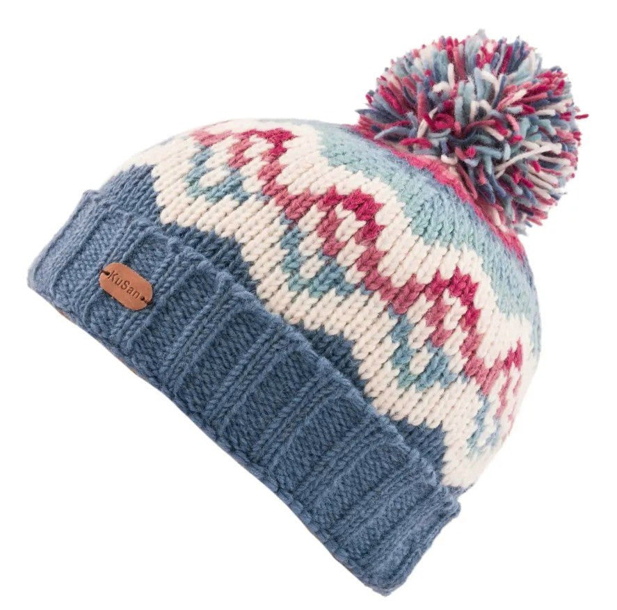 Kusan Wool Turn Up Beanie Hat Grey/Blue