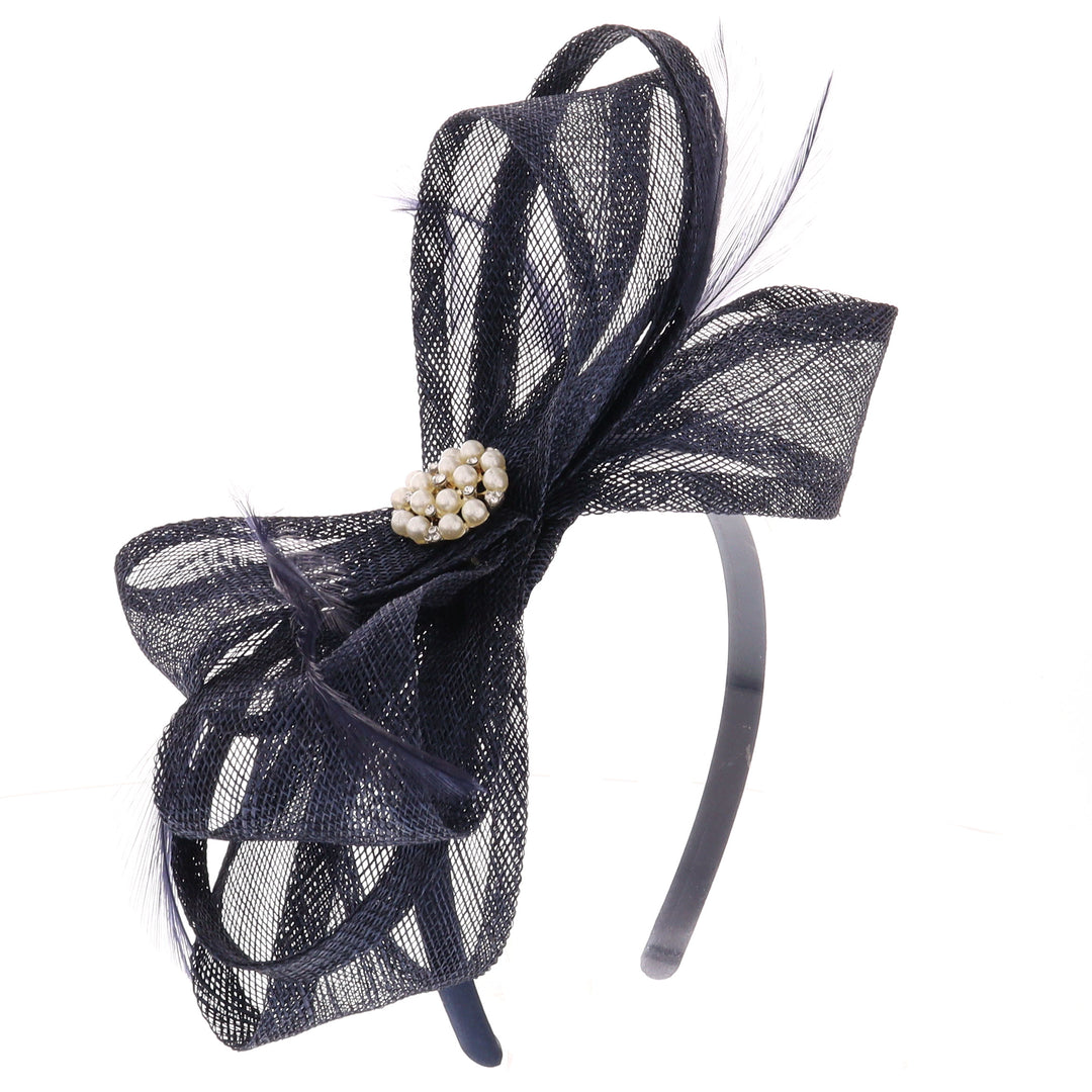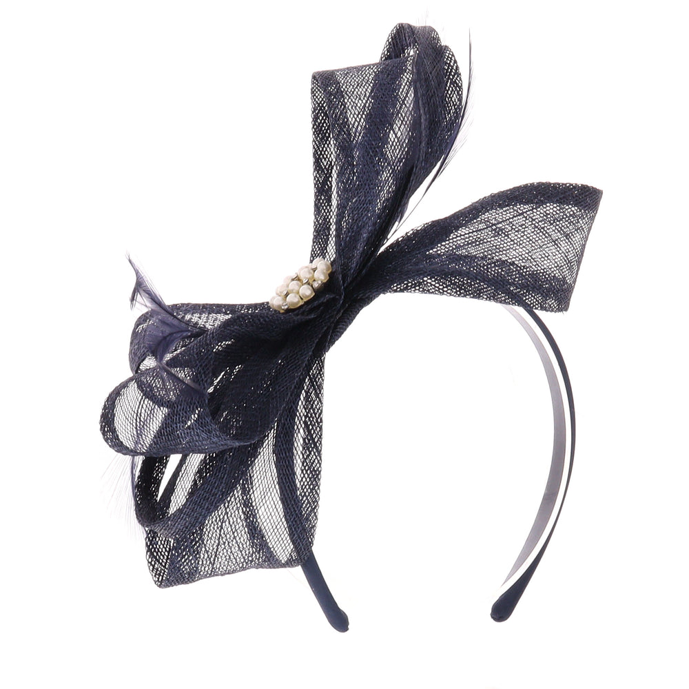 Navy Jewel Sinamay & Feather Headband Fascinator