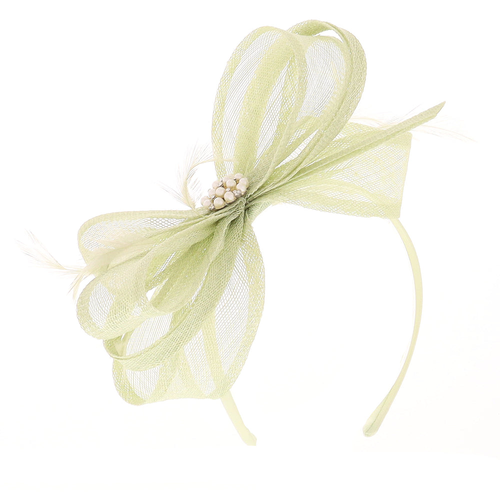 Sage Green Jewel Sinamay & Feather Headband Fascinator