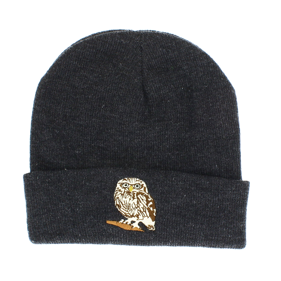 Owl Embroidered Beanie Hat in Grey