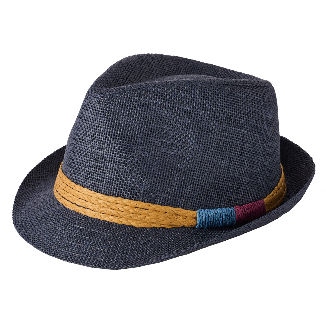 A trilby is a type of hat with a narrow, sloping brim and a creased crown. Similar to a fedora, the trilby's key difference is its shorter, more sharply angled brim, which is typically turned up at the back. Originally a men's hat, it gained popularity in the mid-20th century, particularly in Britain, and is now a popular accessory for both men and women. It is a stylish and versatile hat that can be worn for both formal and casual occasions.