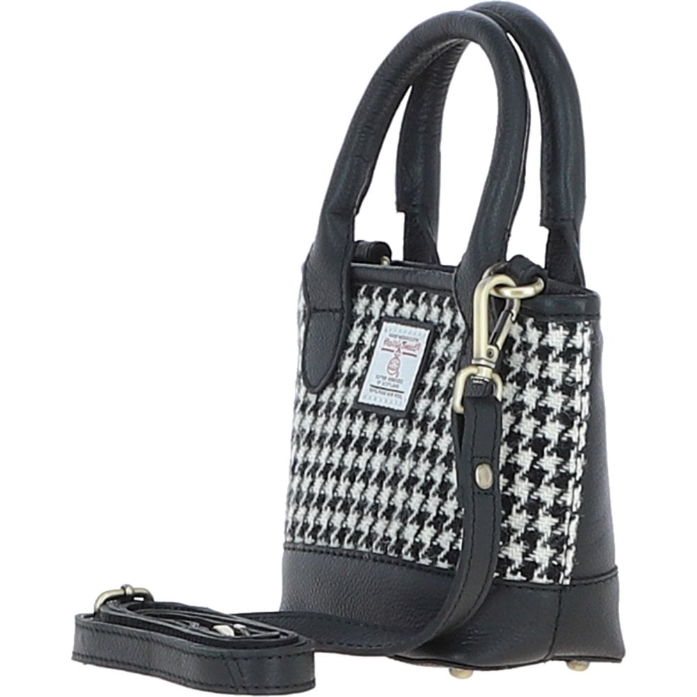 Leather & Harris Tweed Small Tote Handbag (Houndstooth)