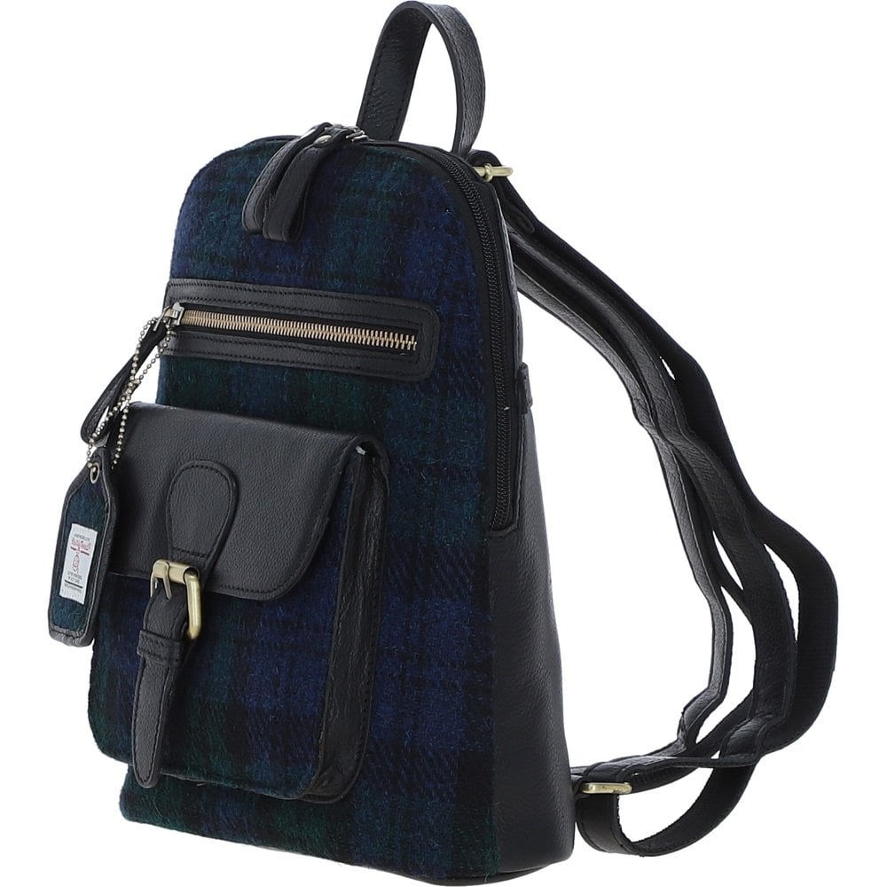 Leather & Harris Tweed Backpack (Black Watch)