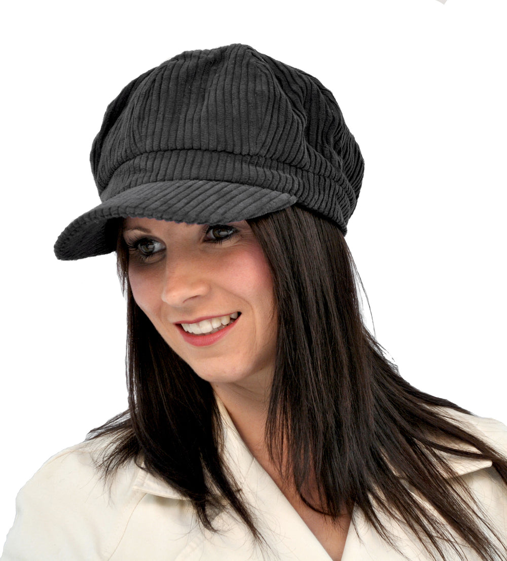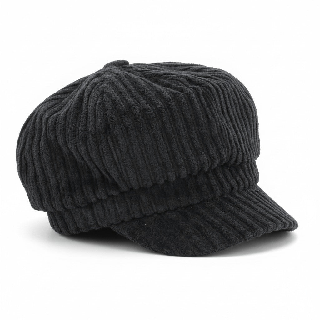 Kelsey Chunky Cord Bakerboy Cap - Black