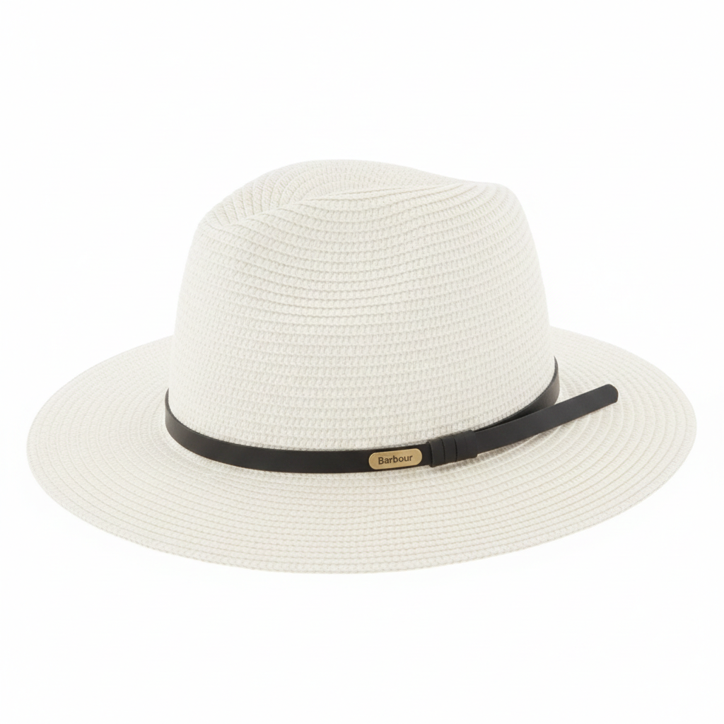 Step out in confidence with the Barbour Evelyn Braid Trilby, a timeless fedora-style hat that marries sophisticated summer styling with essential functionality. Meticulously crafted from a high-quality paper-polyester blend, this hat features a classic braid weave that offers both breathability and a structured, elegant shape.