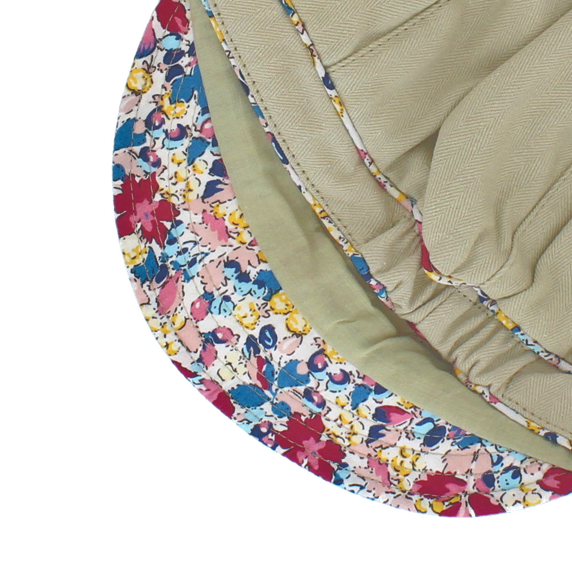 Summer fashion hat with pattern printed trim. Small peak for sun protection.
