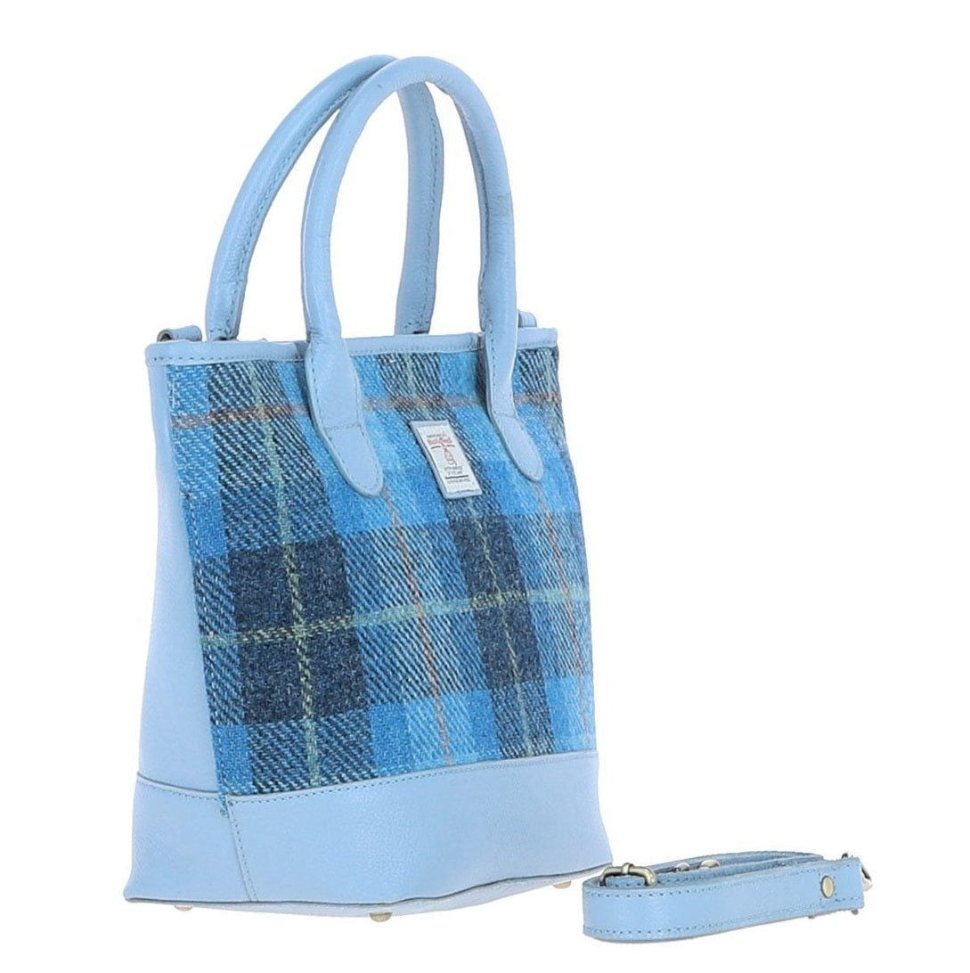 Leather & Harris Tweed Tote Handbag (Light Blue)